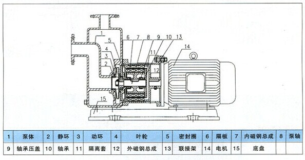 (六)磁力泵正常運行1000小時後,應拆檢軸承和端面動(dòng)環的磨損情況,並(bìng)更換不宜再用的易損件